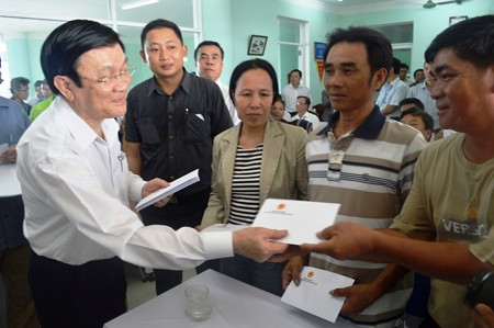 He praised the fishermen’s determination to stay on with their traditional fishing field in Hoang Sa, saying that it helps national sovereignty protection. He reiterated the State’s policy to support fishermen in extended fishing trip and called for a complete chain in the processing and distribution of sea products. The President met and encouraged owner of fishing boat DNa 90152, which was rammed to sink by China on May 26.