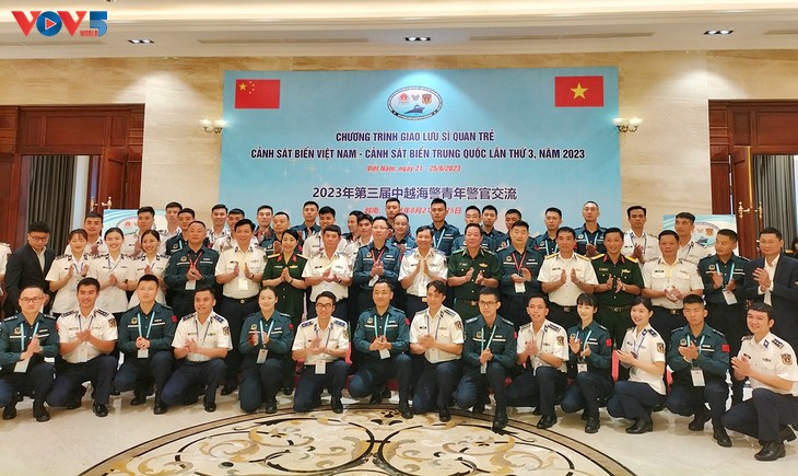 Young Vietnamese and Chinese coast guard officers at their third exchange. (Photo: Tuan Nam/VOV) |