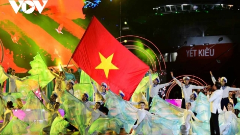 (VOVWORLD) - The art program “Strong and rich from national sea” took place Saturday night at Nha Trang Military Port in Khanh Hoa province. The program, co‑organized by the Voice of Vietnam, the Party Central Committee’s Communication and Education Commission, the General Politics Department of the Vietnam People’s Army, and Khanh Hoa province, spreads love of the sea and highlights the country’s achievements in realizing Party Resolution 36 on sustainable development of the marine economy until 2030 and Vision to 2045.