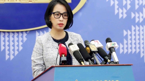 (VOVWORLD) - Vietnam strongly affirms its sovereignty over the Hoang Sa (Paracel) and Truong Sa (Spratly) archipelagos and resolutely opposes all Chinese claims in the East Sea based on the dash line, says the Vietnamese Foreign Ministry spokesperson Pham Thu Hang on Thursday.