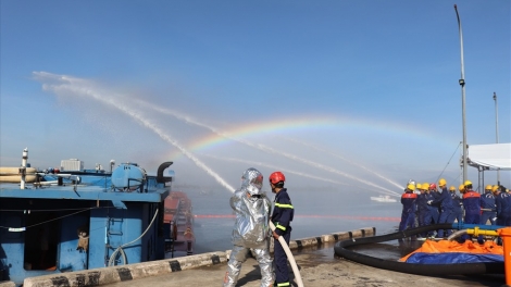 (VOVWORLD) - A drill to respond to level-1 oil spill was held at Tho Quang specialized port in Da Nang City last week, involving 150 people and advanced vehicles and equipment.