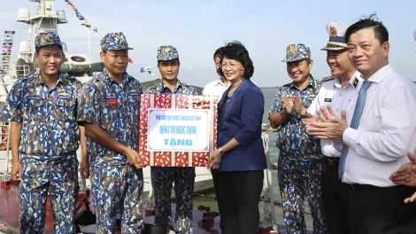 (VOVWORLD) -Vice President Dang Thi Ngoc Thinh visited and presented gifts to officers and soldiers of Naval Region 2 stationed in Vung Tau City on the 55th anniversary of the naval force’s first victories in August 1964.