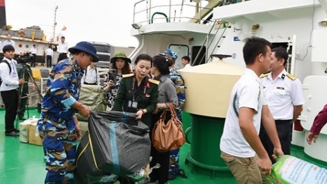 (VOVworld) – The Commander of Zone 4 Naval Force organized a trip consisting of leaders and representatives from many sectors to visit people and soldiers in Truong Sa district, Khanh Hoa province, and DK1 Platform in the southern continental shelf.