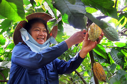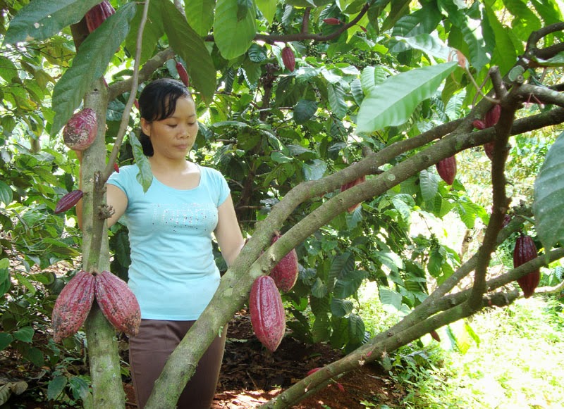 ![]() Local farmers harvest cocoa in Bu Dang