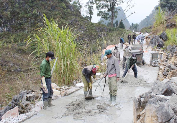 Paving roads in Meo Vac. Photo: baohagiang.vn
