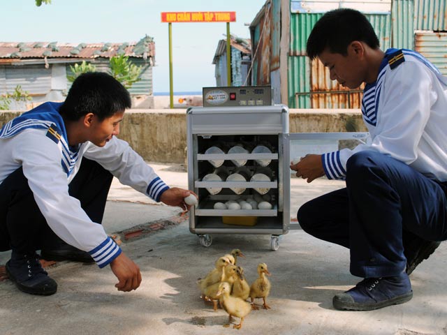 | Egg hatching machine handed over to island villages in Truong Sa archipelago. (Photo: Le Ha) |