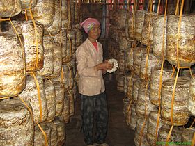 | Cat’s ear mushrooms are grown in thousands of bags in the house. (Photo: corinasiavietnam.org) |