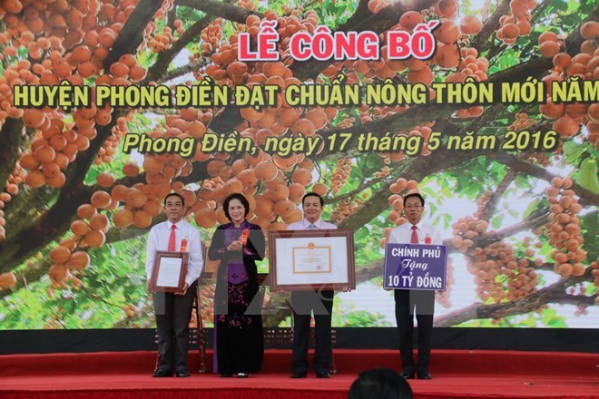 | NA Chairwoman Nguyen Thi Kim Ngan at the ceremony to mark Phong Dien district becoming the first new-style rural district in Can Tho city. (Photo: VNA) |