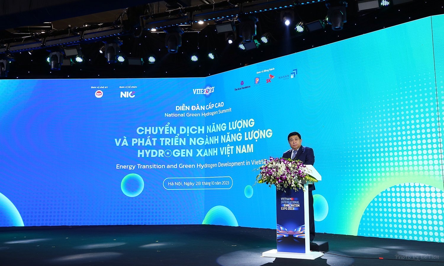 Minister of Planning and Investment Nguyen Chi Dung speaks at the National Summit on Green Hydrogen in Vietnam. (Photo:NIC) |