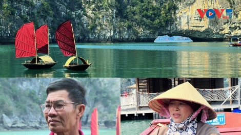 [VOVWORLD] - 离开下龙的船码头,一艘小快艇载着我们穿梭于下龙湾——两度被联合国教科文组织认定为世界自然遗产的巍峨石灰岩岛屿之间。在这个雄伟的空间中,有一个地方不喧闹、不嘈杂,却让人不由得慢下脚步。那便是汪翁渔村,一个静卧于遗产中心的宁静之地。