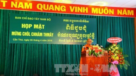 (VOV)- 据本台驻九龙江平原记者海峰、潘映报道,适值高棉族传统新年之际,西南部指导委员会4月5日在芹苴市举行九龙江平原各省市高棉族老革命家,南宗佛教上座、大德和僧众见面会。
