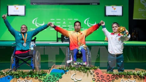(VOVworld)- 河内时间9月9日凌晨,参加2016年夏季残疾人奥林匹克运动会上的越南举重运动员黎文公在男子49公斤级比赛中以181公斤的成绩夺得金牌,不仅如此,他还两次刷新男子49公斤级世界纪录。这也是越南自2000年参加残奥会以来的首枚金牌。