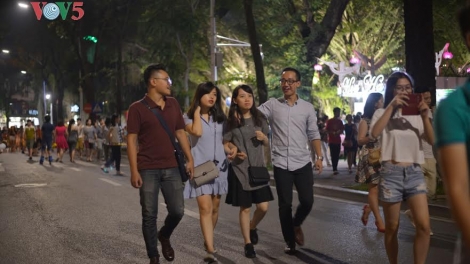 (VOVworld)- 多年以来,河内市民和国际游客也许从没像今年这样在祥和和自在的气氛中迎接越南国庆。这是因为今年河内市政府在河内心脏——还剑湖及周边街道试点开设步行街。没有了汽车、摩托车,人们从容而行,少了平时的繁忙,取而代之的是盼望已久的悠闲感觉。