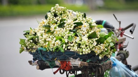 (VOVworld)- 3月柚子花开,在那微风徐徐的时候,阵阵的花香会随着清风四处飘散。淡淡的花香令人陶醉。三月柚子花下街,卖花的人自行车后边载满着白花,散去平时的尘埃,勾画出河内一种纯洁美。