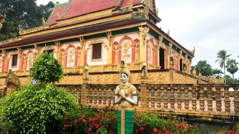(VOVWORLD) - 茶荣省是拥有许多美丽突出建筑工程的地方,其中不得不提及高棉族寺庙。茶荣省拥有全国最庞大的寺庙系统,共有143座。每一座寺庙都极具高棉族文化色彩且都有自己的特色。其中,最突出的有旺莱寺(Vàm Ray)、福诺顿寺(Phnô Đôn)、孔浦洞寺(Kompong Đung)、木公寺(Ông Mẹt)、龙长寺(Long Trường)。