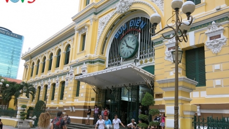 (VOVWORLD) -越南最大邮局——西贡中心邮局是胡志明市吸引众多游客参观的景点。这座大楼带有西方建筑风格并与东方装饰相结合,由法国人于1886至1891年建成。
