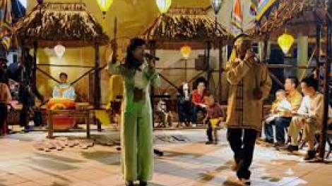 (VOVworld)-夜幕降临,随处燃点的灯笼将古老的会安变成了一座不夜城。夜晚的会安,每处街角都有着别样的魅力。时时传来的夏威夷吉他琴声,会安民间游戏——打陀螺的声音,打小锅的孩子的欢呼声。特别是淮河岸边的发牌唱曲声,都让人迷恋其中。