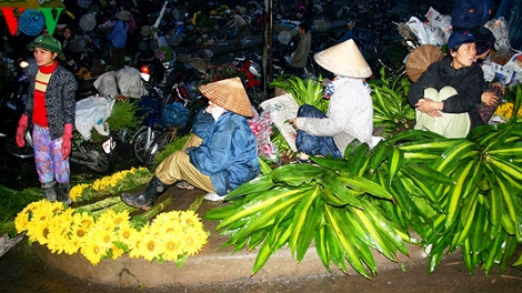 (VOVworld)-春节临近,鲜花、桃花和金菊是家家户户不可缺少的东西。鲜花把每户家庭装扮得更加喜庆。传统春节前一个月,河内市鲜花集市就已是人来人往,热闹非凡。人们的笑脸与五彩缤纷的鲜花交相辉映。