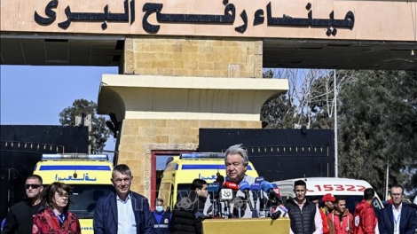 (VOVWORLD) - 古特雷斯在开罗在与埃及外交部长萨梅赫·舒克里举行的联合新闻发布会上,呼吁“立即实行人道主义停火,以减少在加沙地带挣扎求生的巴勒斯坦人的数量”。
