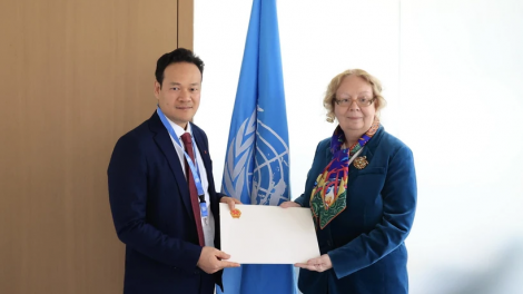 (VOVWORLD) - 越南常驻联合国、世界贸易组织及日内瓦其他国际组织代表团新任团长梅潘勇大使2月28日向联合国日内瓦办事处总干事塔蒂亚娜·瓦洛瓦亚(Tatiana Valovaya)女士递交委任书,正式开始履行职务。