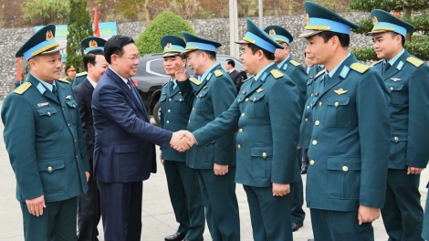 (VOVWORLD) - 国会主席王庭惠1月31日在安沛市探望防空空军军种371师921团并向该团干部战士致以新春祝福。