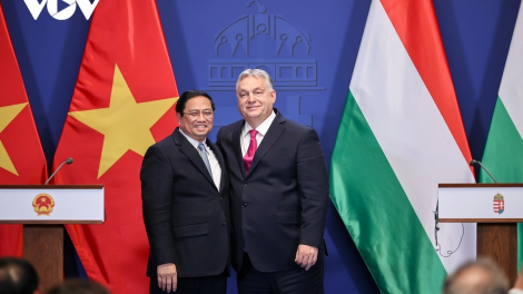 (VOVWORLD) -应匈牙利总理欧尔班·维克托(Orbán Viktor)邀请,越南政府总理范明政1月18日至20日对匈牙利进行正式访问。当地时间18日下午,维克托主持仪式,欢迎范明政一行。欢迎仪式后,双方举行会谈。