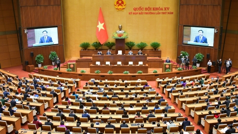 (VOVWORLD) -越南15届国会5次特别会议1月18日在国会大厦闭幕。越南国家主席武文赏、国会主席王庭惠,原党、国家、祖阵领导人及近480名国会代表与会。