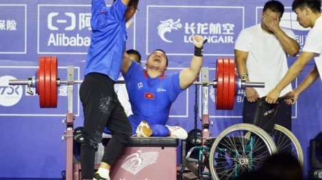(VOVWORLD) - 第四届亚洲残疾人运动会,越南举重运动员阮平安10月23日下午为越南残疾人体育代表团再摘下一枚铜牌,来自举重男子54公斤级。