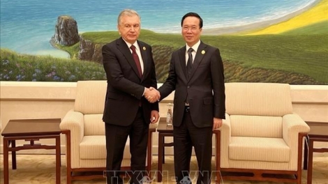 (VOVWORLD) - 在中国北京出席第三届“一带一路”国际合作高峰论坛期间,越南国家主席武文赏10月17日下午会见了乌兹别克斯坦总统米尔济约耶夫(Shavkat Mirziyoyev)。