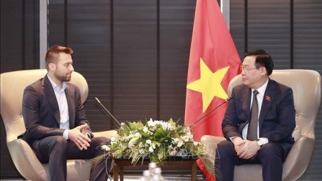 (VOVWORLD) -对保加利亚进行正式访问期间,越南国会主席王庭惠当地时间9月25日在保加利亚首都索非亚分别会见了 保加利亚最大制药企业SoPharma集团并购总监迪米塔•奈德诺夫(Dimitar Naydenov)和 丹麦知名货运集团DSV保加利亚总部首席执行官克拉西米拉•万德瓦(Krasimira Vandeva)。
