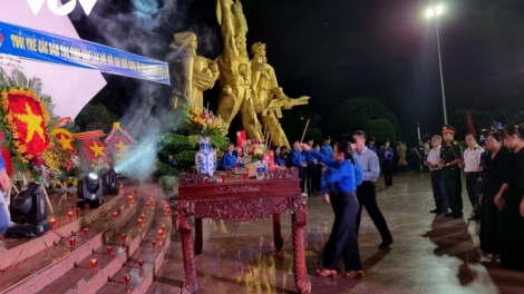 (VOVWORLD) - 适值越南荣军烈士节76周年之际,7月26日,在河内烈士陵园,胡志明共青团中央委员会与劳动荣军社会部、教育部、河内市联合举办国家级 “感恩英雄烈士燃烛仪式”。主会场设在河内烈士陵园,和平、广义、西宁、河江、广宁、广治、多乐、茶荣等九省的烈士陵园设分会场。