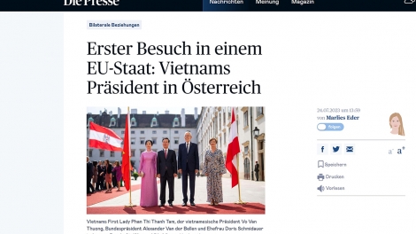(VOVWORLD) - 奥地利媒体和各大报7月24日纷纷报道越南国家主席武文赏和夫人对奥地利进行的正式访问并强调,此行将为两国良好传统关系注入动力。