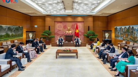 (VOVWORLD) -7月24日,越南国会主席王庭惠在国会大厦会见来访的韩国前国会议长朴秉世。王庭惠表示,两国议会合作完全可以成为世界议会关系的典范。