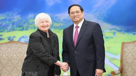 (VOVWORLD) - 7月20日下午,越南政府总理范明政在河内会见来越进行工作访问的美国财政部长妮特·耶伦( Janet Yellen)。