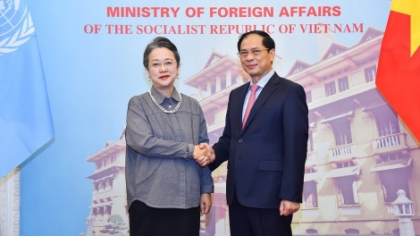 (VOVWORLD) -7月3日,越南政府总理范明政在河内会见正对越南进行正式访问的联合国副秘书长兼亚太经社会执行秘书阿里沙赫巴纳(Armida Alisjahbana)。