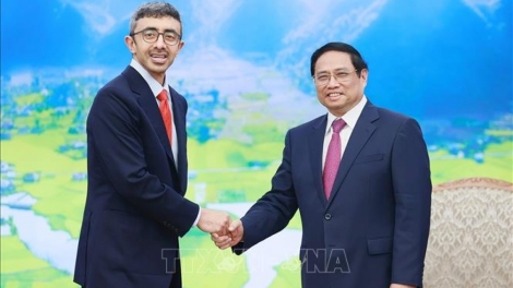 (VOVWORLD) - 越南政府总理范明政6月14日上午在政府总部会见正对越南进行工作访问的阿联酋外长阿卜杜拉(Sheikh Abdullah bin Zayed Al Nahyan)。