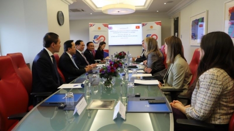 (VOVWORLD) - 越南外交部长裴青山5月5日在英国伦敦会见了阿斯利康公司全球副总裁朱丽叶·怀特(Juliette White),并出席该公司投资总额5000万美元的越南森林景观恢复项目公布仪式。