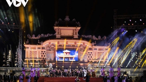 (VOVWORLD) - 4月29日,(即农历3月初10)凌晨在富寿省义岭山顶国家级特殊历史遗迹区内的京天殿,越南国家主席武文赏及党和国家领导人共同举行上香仪式,缅怀历代雄王。