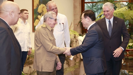 (VOVWORLD) -越南国会主席王庭惠4月20日在哈瓦那古巴革命宫会见古巴革命领袖劳尔·卡斯特罗·鲁斯大将和古巴共产党中央委员会第一书记、国家主席米格尔·迪亚斯-卡内尔。
