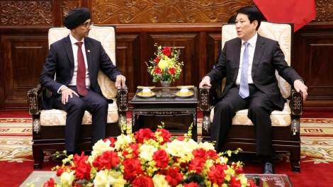 (VOVWORLD) -12月12日,在主席府,越南国家主席梁强会见前来递交国书的埃及、印度、新加坡、智利等国驻越大使。