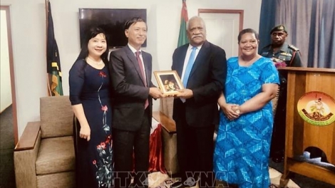 (VOVWORLD) -越南驻澳大利亚兼驻南太平洋五个岛国大使阮必成3月28日在瓦努阿图首都维拉港向瓦努阿图总统尼克尼克·武罗巴拉武( Nickelike Vurobaravu)递交国书。