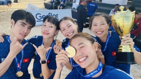(VOVWORLD) -在2023年亚洲沙滩手球锦标赛上, 越南女子沙滩手球队以全胜战绩成功卫冕。