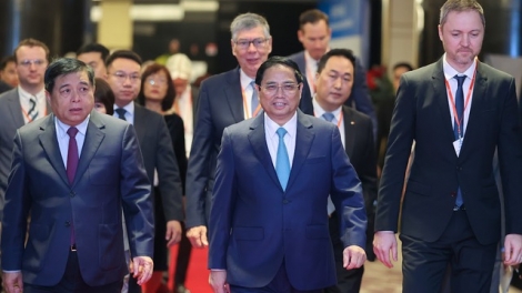 (VOVWORLD) -越南政府总理范明政3月19日在河内出席题为“企业界与越南政府同行 共同推动绿色增长”的2023年越南企业年度论坛(VBF 2023)高级别会议。