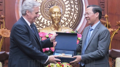 (VOVWORLD) - 胡志明市人民委员会主席潘文买3月17日会见正对该市进行工作访问的英国首相负责泰国、缅甸、文莱和越南的贸易特使马克·卡尼尔(Mark Garnier)。