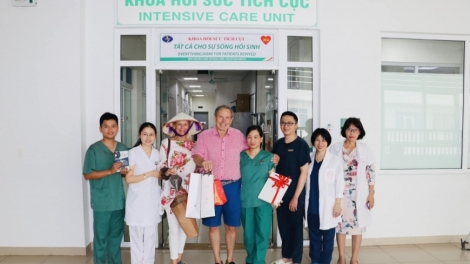 (VOVWORLD) - 在从英国飞往越南的0054航班上被发现感染新冠肺炎病毒已过去三年了,这对英国夫妇约翰·凯恩和爱丽孙巴尔克3月8日重访越南中央热带病医院以探望和感谢为他治疗的医护人员。