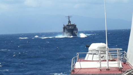 (VOVWORLD) - 2月16日在庆和省海域上,越南海军第4区162旅“李太祖”号(舷号012)猎豹级(Gepard 3.9)护卫舰和新加坡海军“坚持”号(RSS Persistence,舷号209)坚韧级坦克登陆舰圆满完成海上联合演习任务。