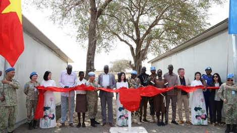 (VOVWORLD) -越南1号工兵队2月11日在阿卜耶伊(Abyei)地区与联合国阿卜耶伊临时安全部队(UNISFA)联合举行仪式,向阿卜耶伊高中学校赠送越南工兵队建设的人道主义工程。