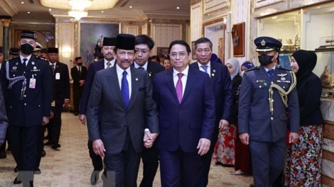 (VOVWORLD) -在范明政总理对文莱进行正式访问框架内,2月11日在汶莱中央政府机关努尔·伊曼宫举行了特别欢迎仪式,文莱王室所有成员参加欢迎仪式并与范明政及夫人率领的越南政府代表团举行会晤。
