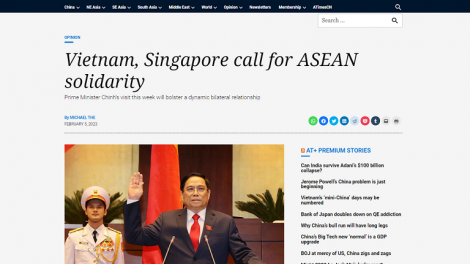 (VOVWORLD) -适值越南政府总理范明政2月8日至10日对新加坡进行正式访问,亚洲时报(Asia Times)刊登文章表示,范明政此访将助力推动越新双边关系,进而为东盟未来的发展注入动力。