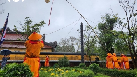 (VOVWORLD) - 顺化古都遗迹区保护中心1月28日在顺化皇城遗产区内的赵庙和世庙举行癸卯春节下迎春竿暨恭贺新春开玺仪式。